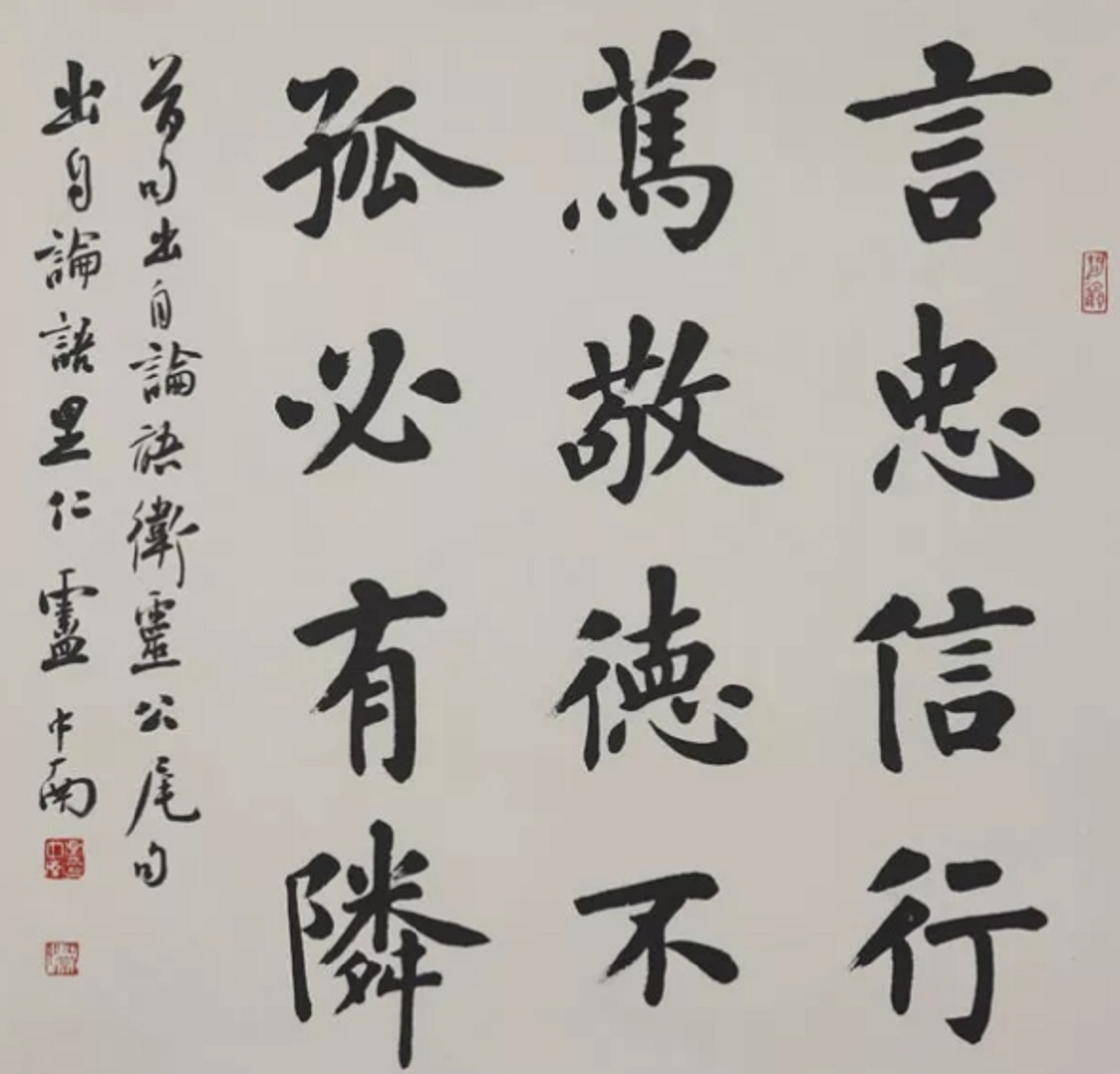 盧中南先生能夠從古法中孕育新知,推陳出新,將歐楷的險(xiǎn)絕化為溫潤(rùn),在傳承中不斷創(chuàng)新,形成了雄強(qiáng)厚重、磅礴大氣的個(gè)人風(fēng)格。