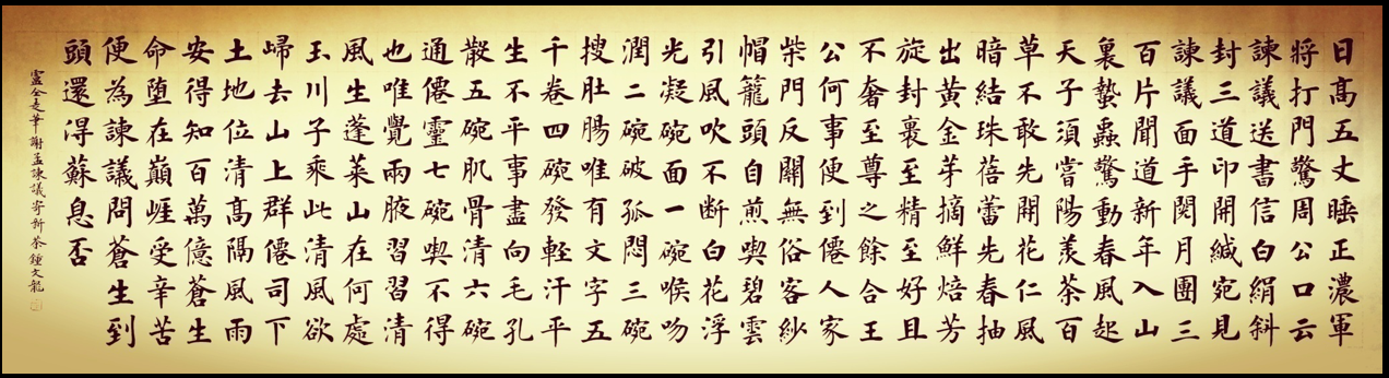 鐘文龍自幼習(xí)書,曾醉心于王羲之小楷,得盧中南先生的真?zhèn)骱螅妓嚾諠u純熟,在國(guó)內(nèi)楷書領(lǐng)域形成了自己的獨(dú)特風(fēng)格。其書風(fēng)古樸敦厚,靈動(dòng)秀雅。
