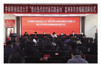 法治日?qǐng)?bào)全媒體記者劉志月 為深入貫徹黨中央、省委關(guān)于做好黨的二十大精神宣講工作的要求,加強(qiáng)交流互動(dòng)、推動(dòng)校地合作,推進(jìn)黨的二十大精神深入基層、深入人心,持續(xù)推動(dòng)中南財(cái)經(jīng)政法大學(xué)師生常態(tài)化扎根基層、融入實(shí)踐、服務(wù)群眾,助力地方文化建設(shè)和經(jīng)濟(jì)社會(huì)發(fā)展。近日,中南財(cái)經(jīng)政法大學(xué)“理論熱點(diǎn)面對(duì)面實(shí)踐基地”掛牌儀式在湖北省監(jiān)利市周老嘴鎮(zhèn)舉行。
