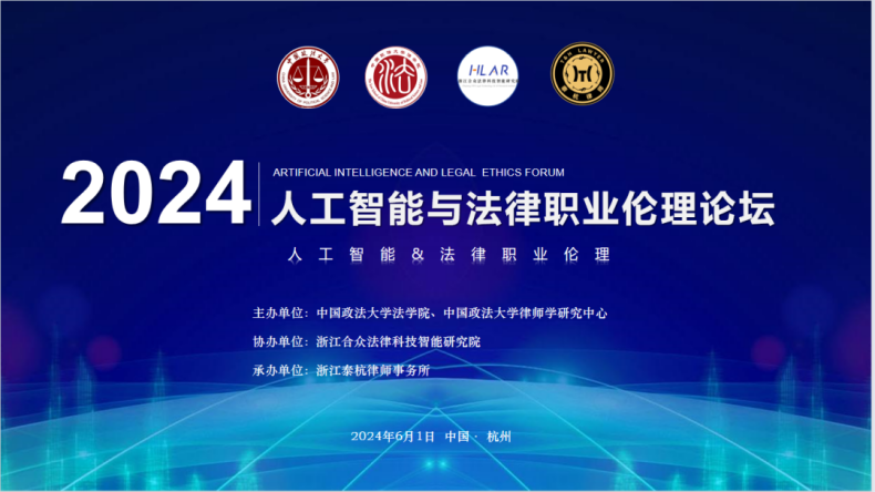 2024年6月1日,“人工智能與法律職業(yè)倫理”論壇在浙江杭州成功舉辦。本次論壇由中國(guó)政法大學(xué)法學(xué)院、中國(guó)政法大學(xué)律師學(xué)研究中心主辦,浙江合眾法律科技智能研究院協(xié)辦,浙江泰杭律師事務(wù)所承辦。來(lái)自中國(guó)政法大學(xué)、浙江大學(xué)、河南大學(xué)、中國(guó)計(jì)量大學(xué)、浙江警察學(xué)院、浙大城市學(xué)院、浙江警官職業(yè)學(xué)院等高等院校的專(zhuān)家學(xué)者,與來(lái)自上海市人民檢察院、杭州互聯(lián)網(wǎng)法院、杭州市互聯(lián)網(wǎng)公證處、浙江省律師協(xié)會(huì)、香港和解中心、國(guó)際爭(zhēng)議解決及風(fēng)險(xiǎn)管理協(xié)會(huì)、北京市隆安律師事務(wù)所的實(shí)務(wù)專(zhuān)家共計(jì)五十余人參加會(huì)議,共同研討人工智能與法律職業(yè)倫理發(fā)展的前沿問(wèn)題。