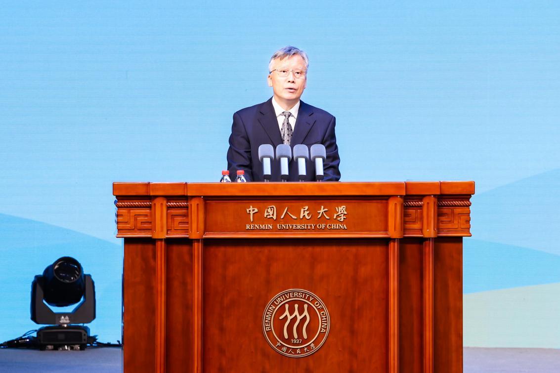 圖為中國(guó)人民大學(xué)副校長(zhǎng)鄭新業(yè)在論壇主會(huì)場(chǎng)開(kāi)幕式上致辭。
