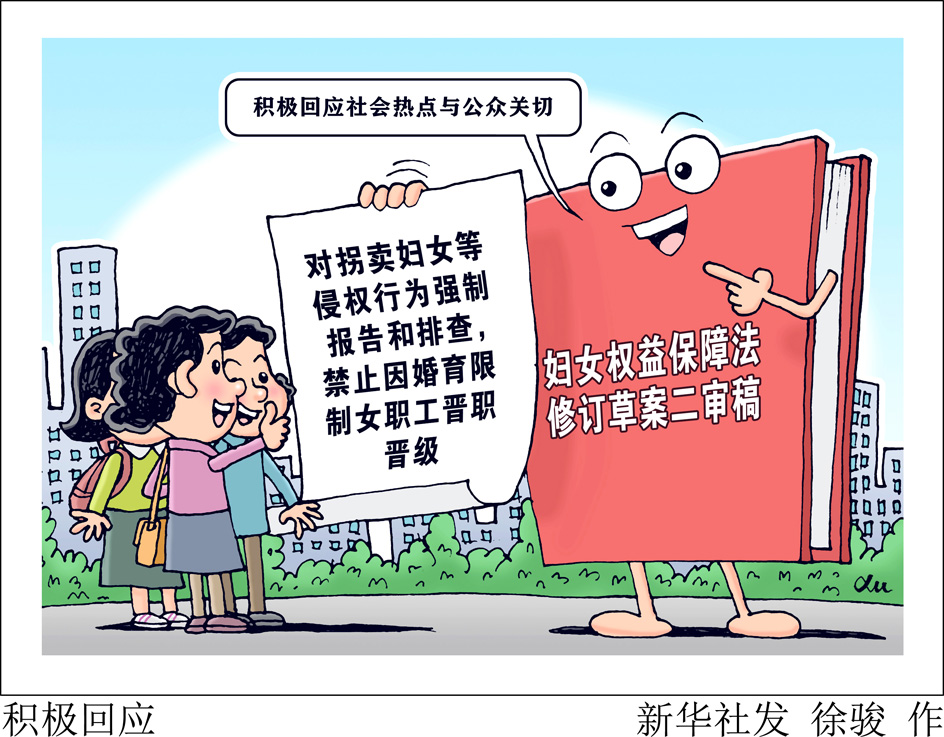 4月18日,婦女權益保障法修訂草案提請十三屆全國人大常委會第三十四次會議二次審議,積極回應社會熱點與公眾關切。