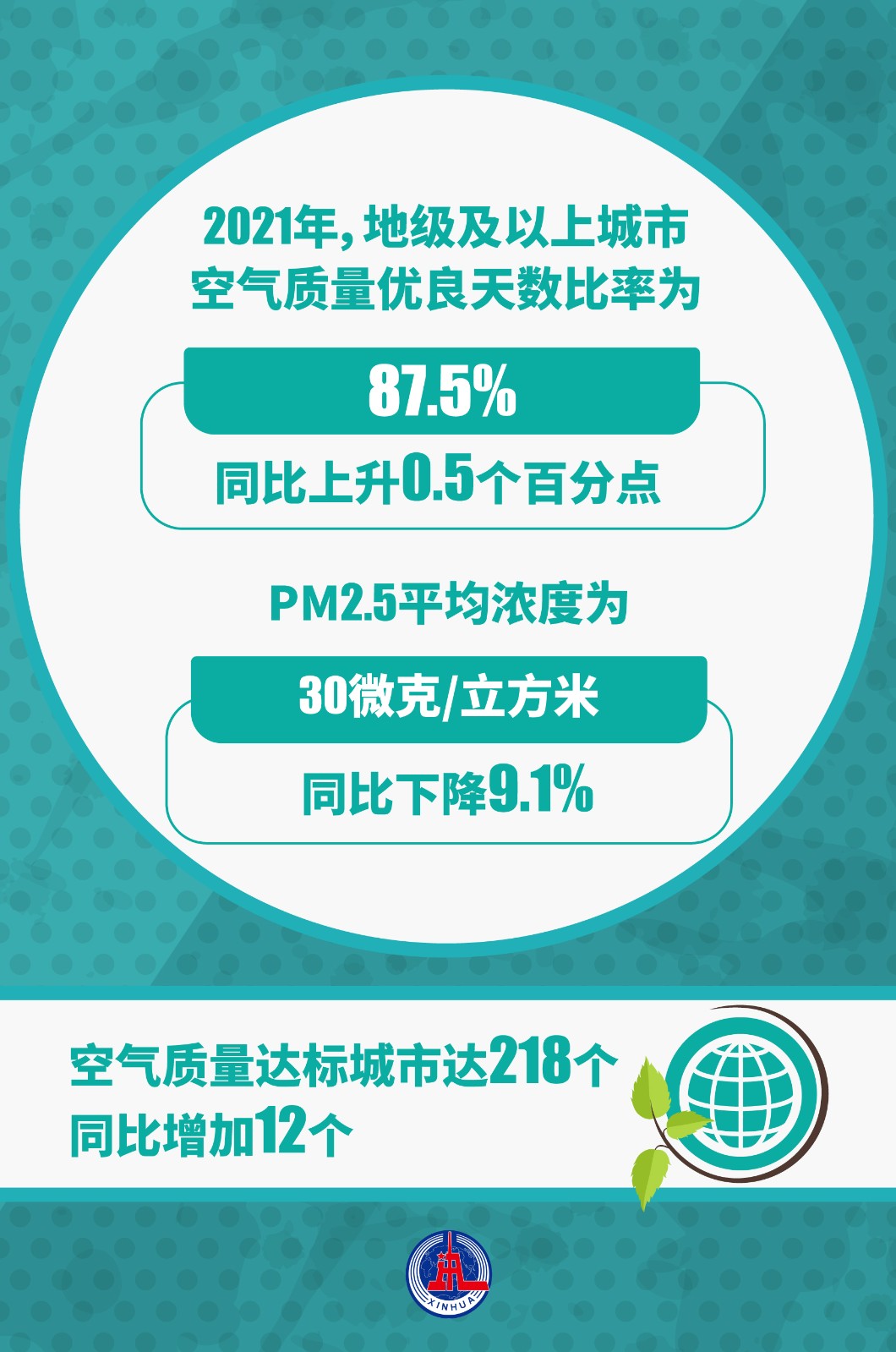 海報:2021年地級及以上城市空氣質量優(yōu)良天數(shù)比率為87.5%