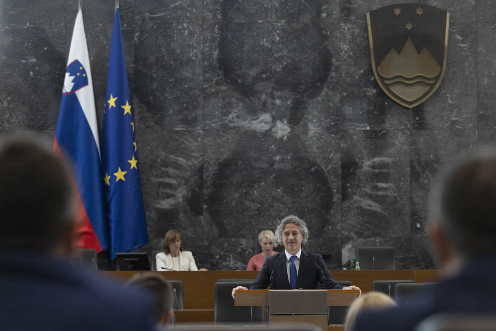 5月25日,在斯洛文尼亞首都盧布爾雅那,自由運(yùn)動黨領(lǐng)導(dǎo)人羅伯特·戈洛布在議會會議上發(fā)表講話。