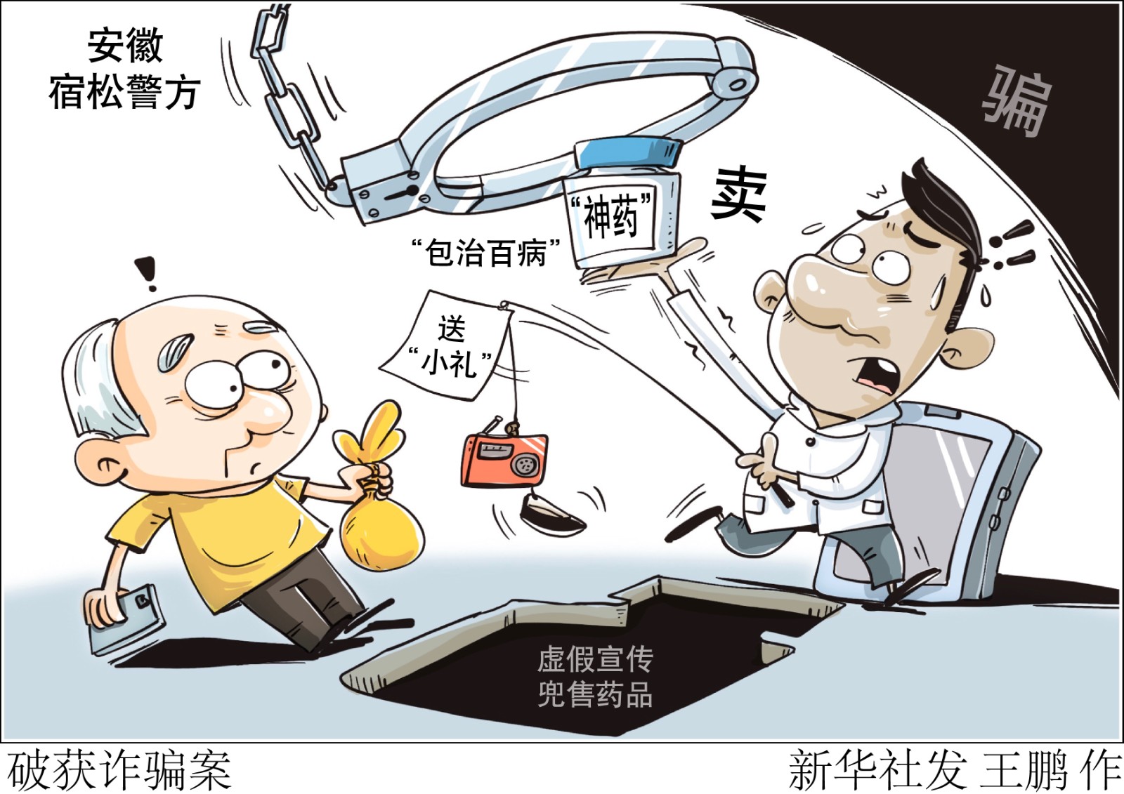 評(píng)書機(jī)、老人鞋等“小禮”請(qǐng)先笑納,“包治百病”的“神藥”快來(lái)試試?小心“騙你沒(méi)商量”!記者日前從安徽省安慶市宿松縣公安局了解到,當(dāng)?shù)鼐酱虻粢粋€(gè)向中老年群體虛假宣傳兜售藥品進(jìn)行詐騙的犯罪團(tuán)伙,全國(guó)多地?cái)?shù)千人上當(dāng),涉案金額近千萬(wàn)元。