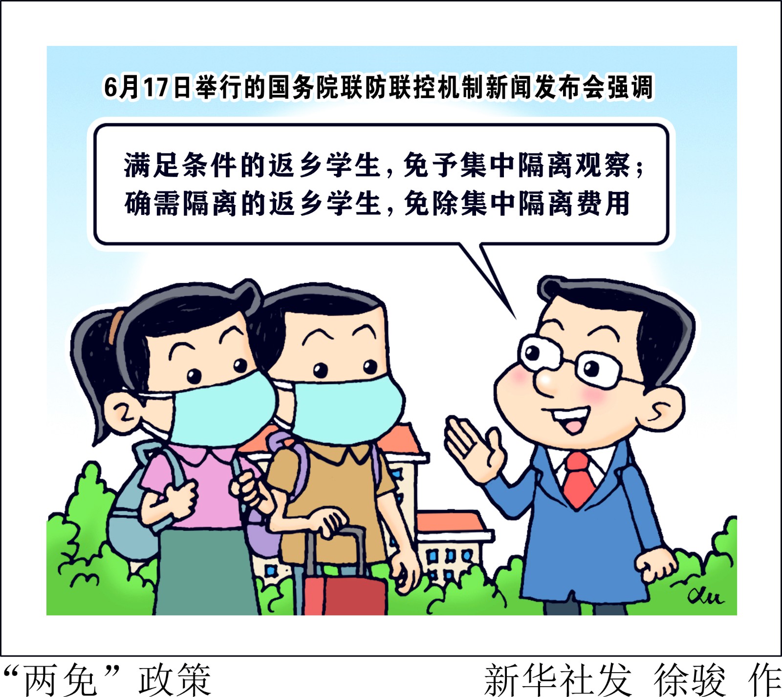 暑期即將來(lái)臨,新冠肺炎疫情下如何保證高校學(xué)生順利返鄉(xiāng)?6月17日舉行的國(guó)務(wù)院聯(lián)防聯(lián)控機(jī)制新聞發(fā)布會(huì)強(qiáng)調(diào),滿足條件的返鄉(xiāng)學(xué)生免予集中隔離觀察,確需隔離的返鄉(xiāng)學(xué)生免除集中隔離費(fèi)用;各地要逐級(jí)傳達(dá)、落實(shí)學(xué)生離校返鄉(xiāng)政策,不得層層加碼。