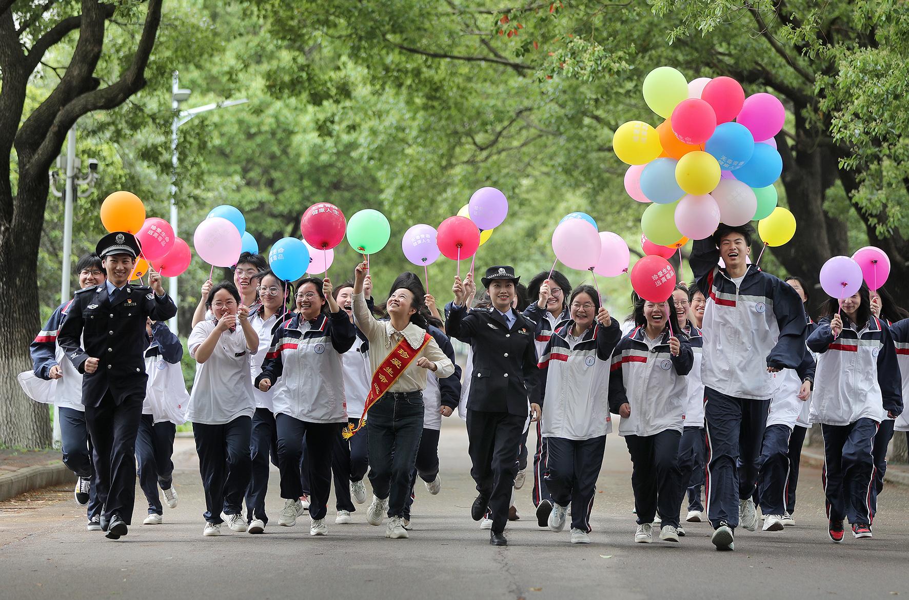 5月5日,在湖北省荊門市東寶中學(xué)“成人禮”活動中,荊門市公安局高新區(qū)·掇刀區(qū)分局民警通過憲法領(lǐng)誓、禁毒宣講、放飛夢想等形式,引導(dǎo)同學(xué)們保持積極的人生態(tài)度和健康的生活方式,自覺抵制毒品的誘惑。