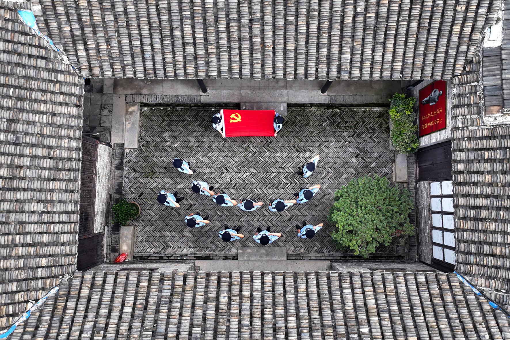 6月30日, 江蘇省揚(yáng)州市寶應(yīng)縣公安局城北派出所黨員民警在周恩來少年時(shí)期讀書處重溫入黨誓詞,激勵(lì)廣大黨員民警不忘初心、牢記使命,傳承革命精神,鍛造忠誠(chéng)警魂。