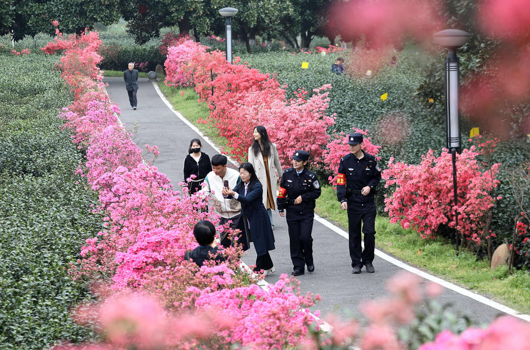 人間最美四月天,踏春賞花正當時。4月7日,安徽省舒城縣公安局舒茶派出所組織警力在轄區(qū)九一六茶園巡邏守護,為游客提供解答咨詢、求助報警、安全提示、游園引導(dǎo)等服務(wù)。