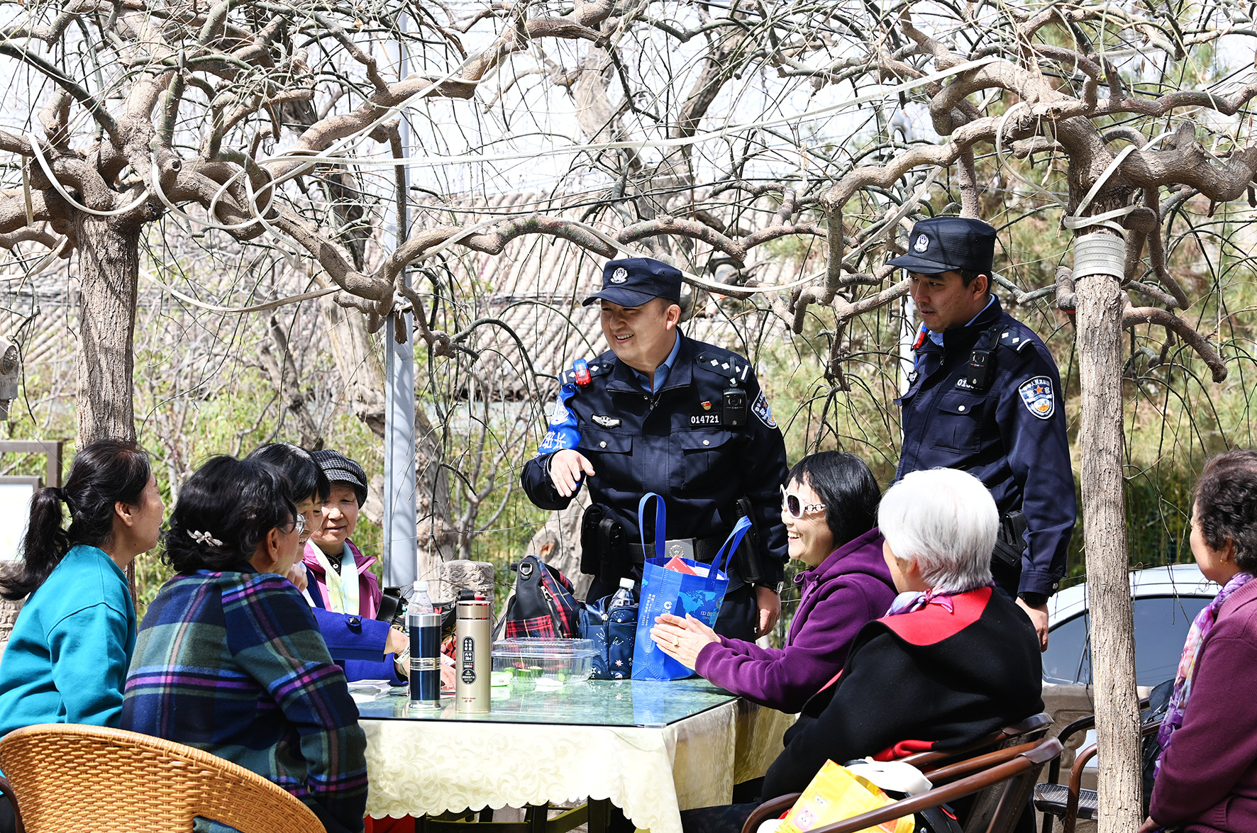 圖為民警與游客交流互動(dòng),征求工作意見建議。