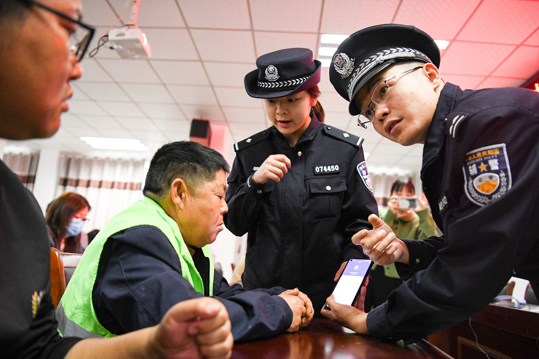 圖為民警為群眾演示下載國家反詐App的方法。