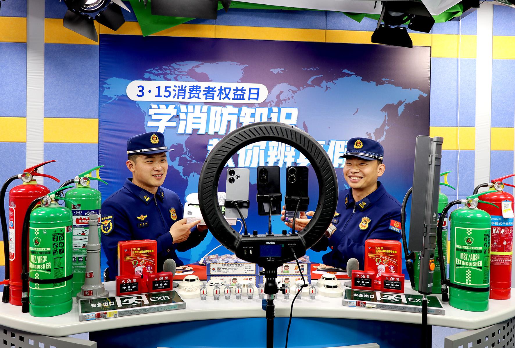 在“3·15”國(guó)際消費(fèi)者權(quán)益日來臨之際,3月12日,山東省棗莊市高新區(qū)消防救援大隊(duì)消防員走進(jìn)直播間,通過知識(shí)講解、案例分析、實(shí)物演示、真假對(duì)比、性能測(cè)試、線上互動(dòng)等方式,為網(wǎng)友普及消防產(chǎn)品知識(shí)。