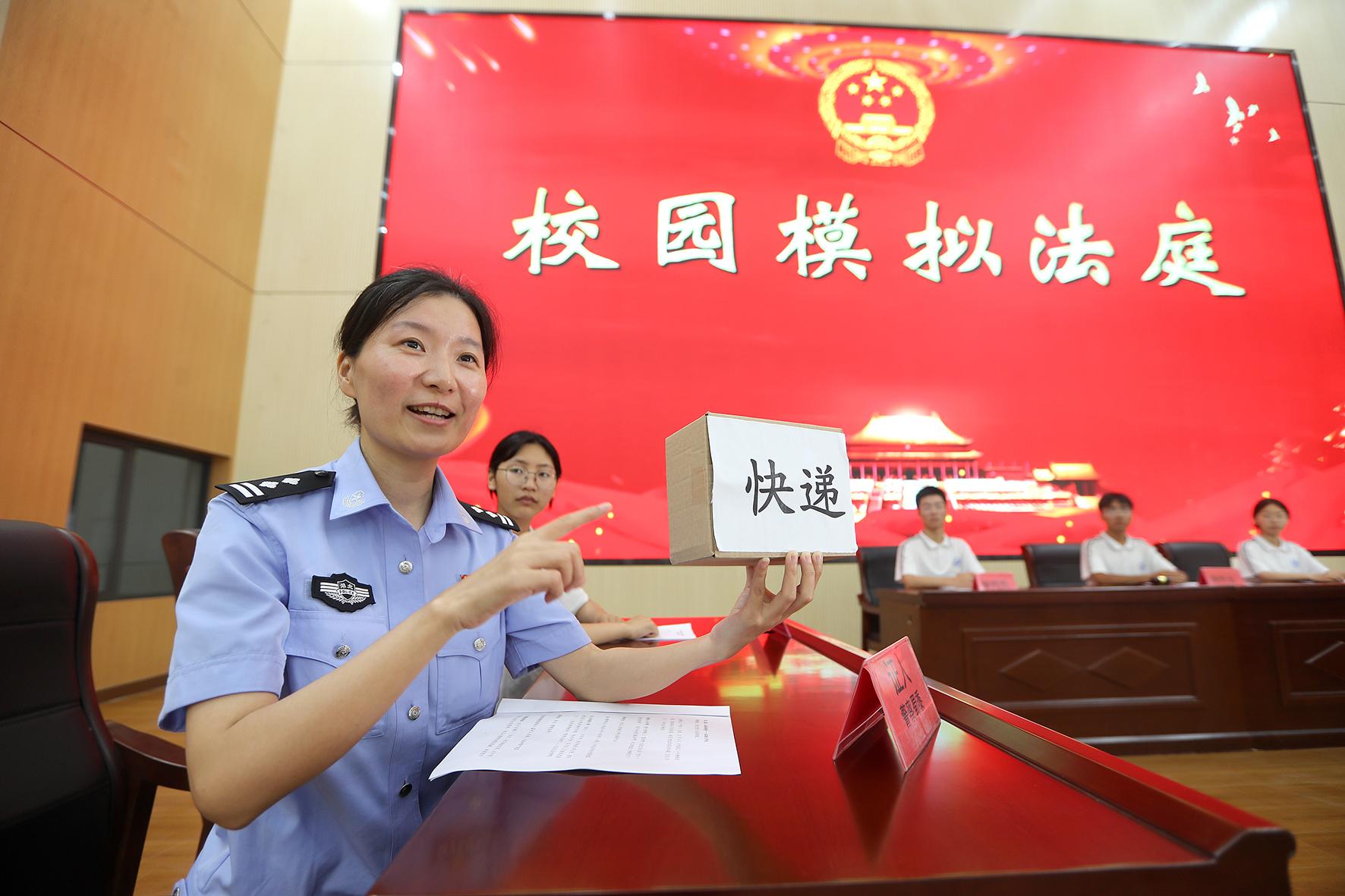 6月17日,在湖北省荊門市沙洋縣職業(yè)技術教育中心,沙洋縣公安局民警與學生共同演繹“模擬法庭”庭審現(xiàn)場,通過“情景再現(xiàn)+案例解析”的創(chuàng)新普法模式,為300余名師生帶來一堂生動的禁毒法治教育課。