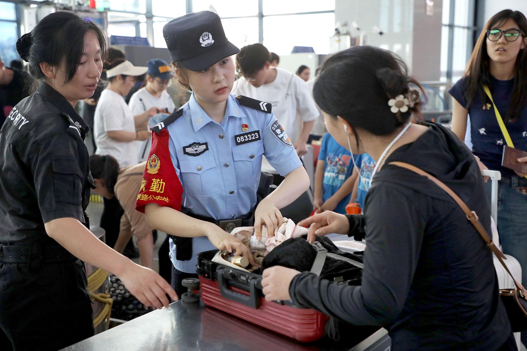 7月1日,上海鐵路公安局合肥鐵路公安處六安站派出所民警在對旅客攜帶物品進行抽查。當(dāng)日,2025年鐵路暑運拉開帷幕。合肥鐵路公安處六安站派出所通過科學(xué)調(diào)配警力、細化工作措施、宣傳法治知識等,為暑運旅客平安出行保駕護航。
