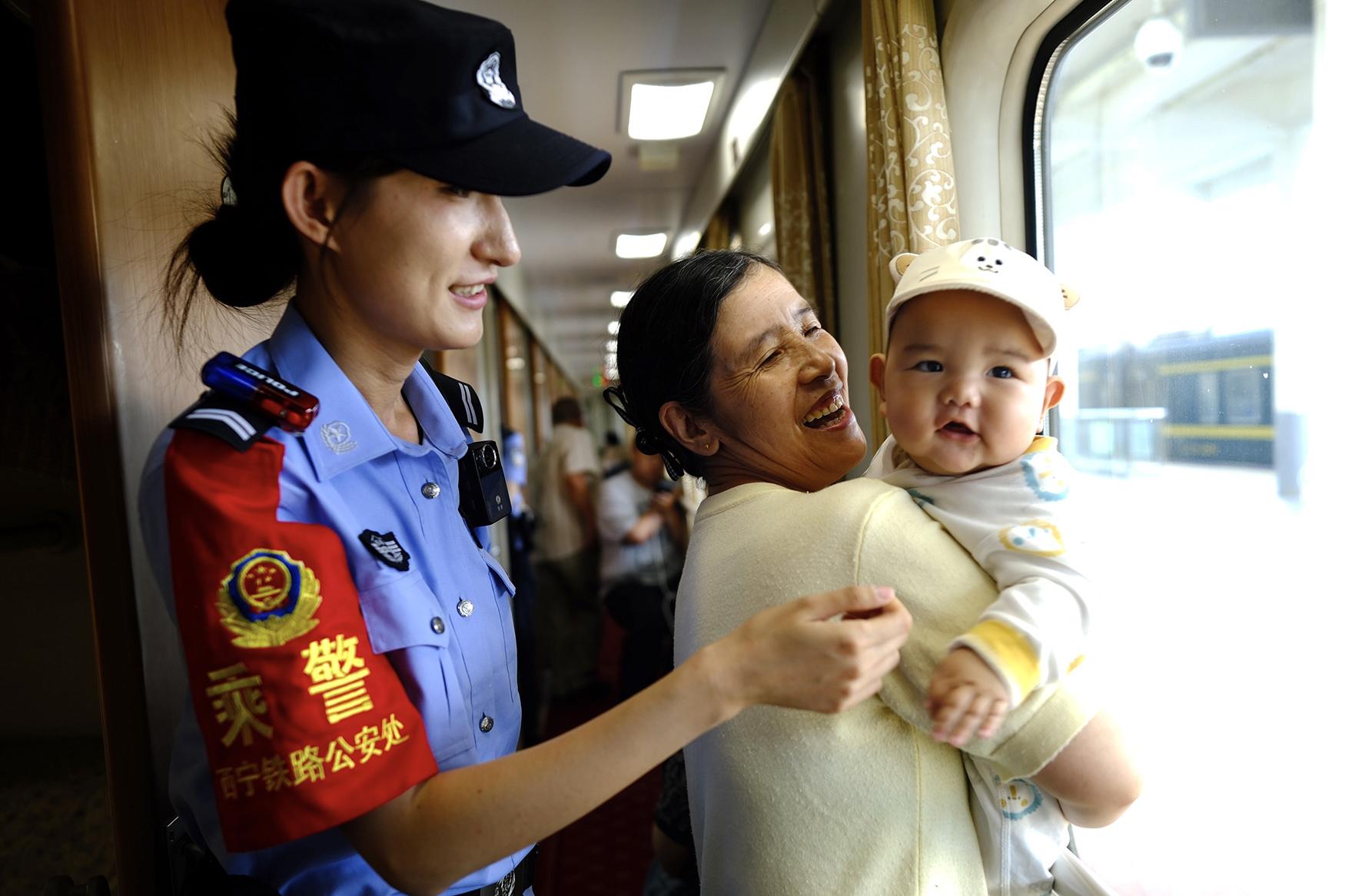 7月1日,青藏鐵路公安局西寧公安處乘警支隊民警在從四川成都開往青海西寧的K1058次列車上服務(wù)旅客。