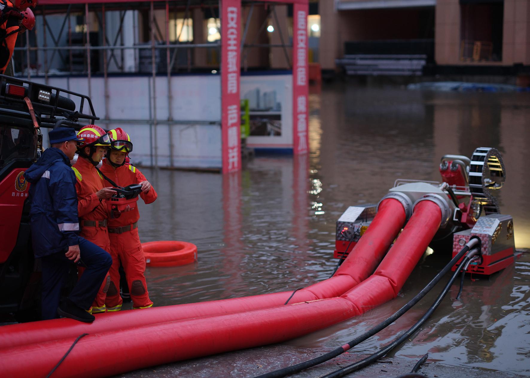 7月3日,成都暴雨致市區(qū)部分區(qū)域出現內澇。四川省森林消防總隊特勤大隊80名消防員攜帶大功率水泵、應急排澇車、排澇機器人等救援裝備,連夜在成都市錦江區(qū)開展排澇救援工作。