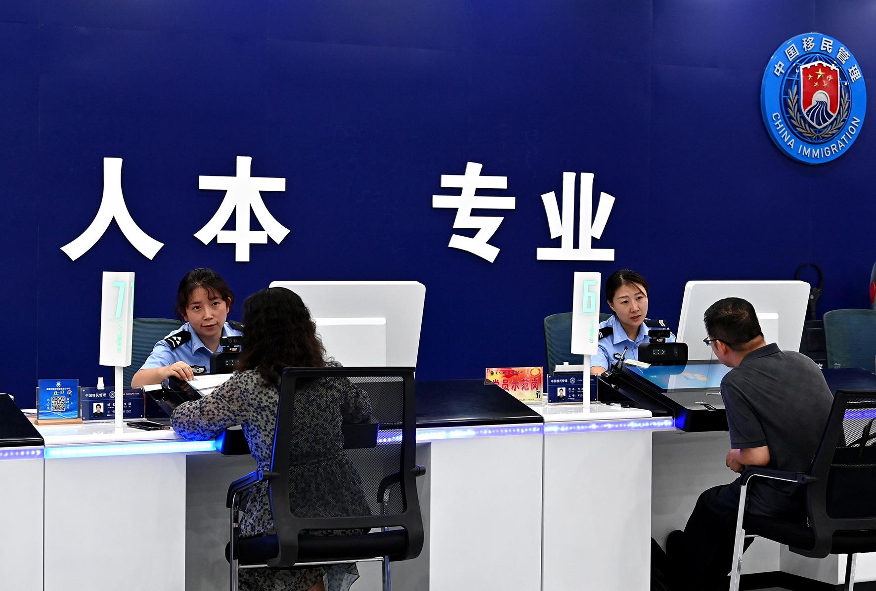 圖為8月1日,蘭州市公安局出入境服務(wù)大廳服務(wù)窗口正在為群眾辦理相關(guān)業(yè)務(wù)。