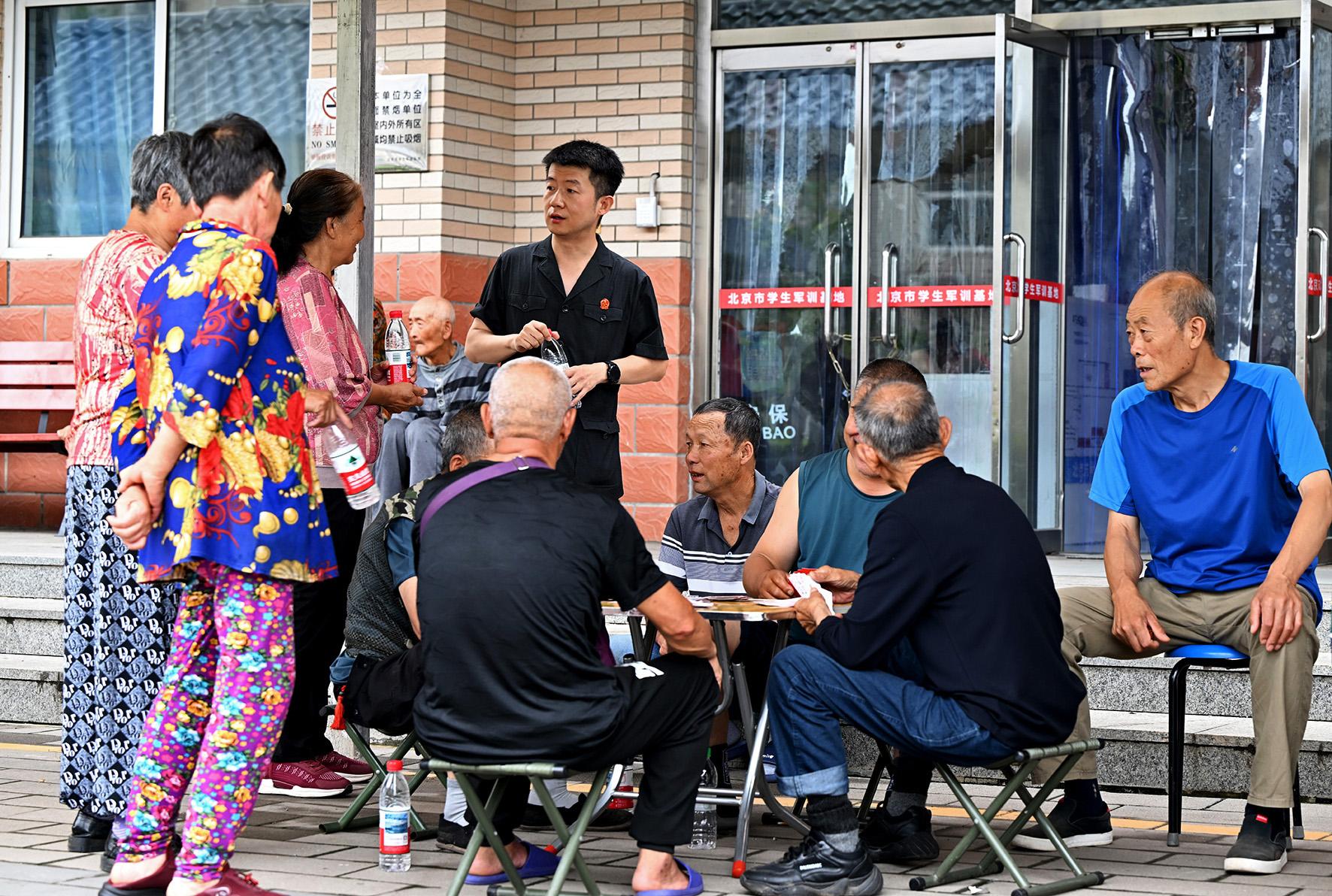 在懷柔區(qū)最大的受災群眾安置點,懷柔區(qū)人民法院與區(qū)人民檢察院的干警均馳援在此,為群眾提供餐食分發(fā)、情緒疏導、法律咨詢等服務?!拔艺J識你們,今年5月,你們還去村里給我們普過法。”安置點池大媽的一句話,讓渾身是汗的懷柔區(qū)人民法院湯河口法庭副庭長周科露出了笑容。