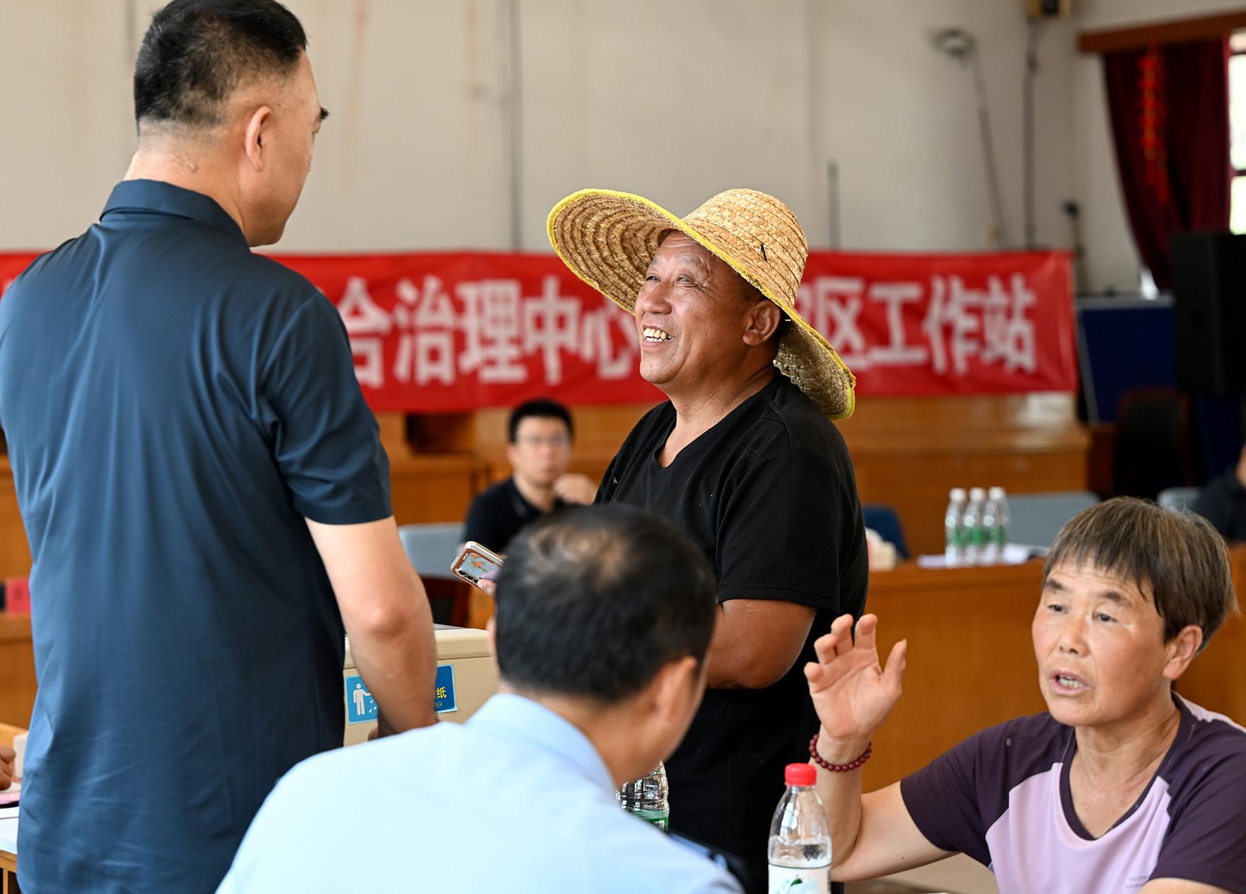 8月6日,臨時“綜治中心”秩序井然,懷柔區(qū)人民法院、北京市公安局懷柔分局、懷柔區(qū)司法局、懷柔區(qū)農(nóng)業(yè)農(nóng)村局等職能部門窗口的工作人員都耐心回應著村民的每一個訴求。