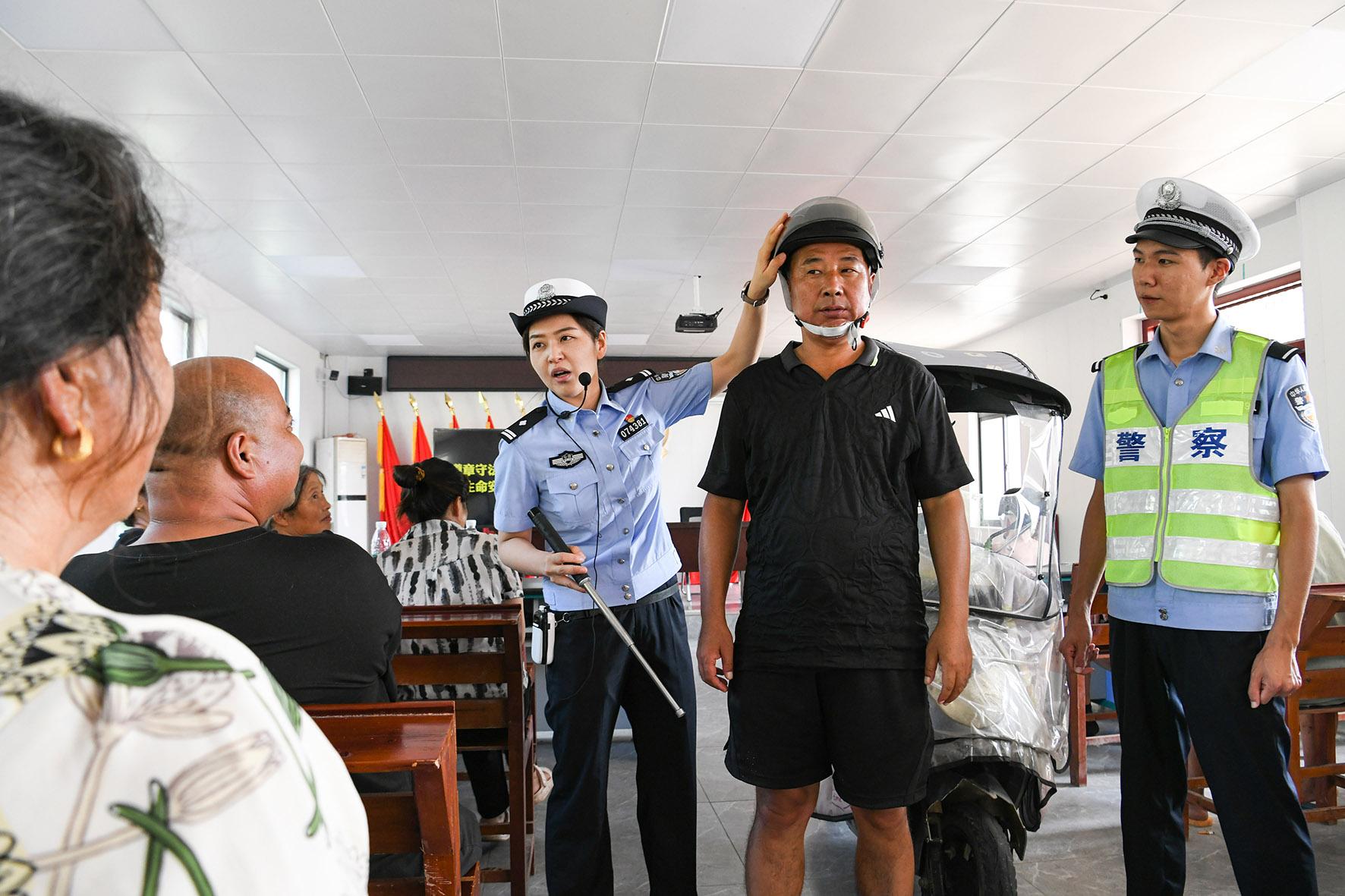 9月4日,安徽省馬鞍山市含山縣公安局交管大隊(duì)民警走進(jìn)銅閘鎮(zhèn)大馬行政村,開展“美麗鄉(xiāng)村行”交通安全巡回宣傳活動(dòng),將安全知識(shí)送到村民家門口。