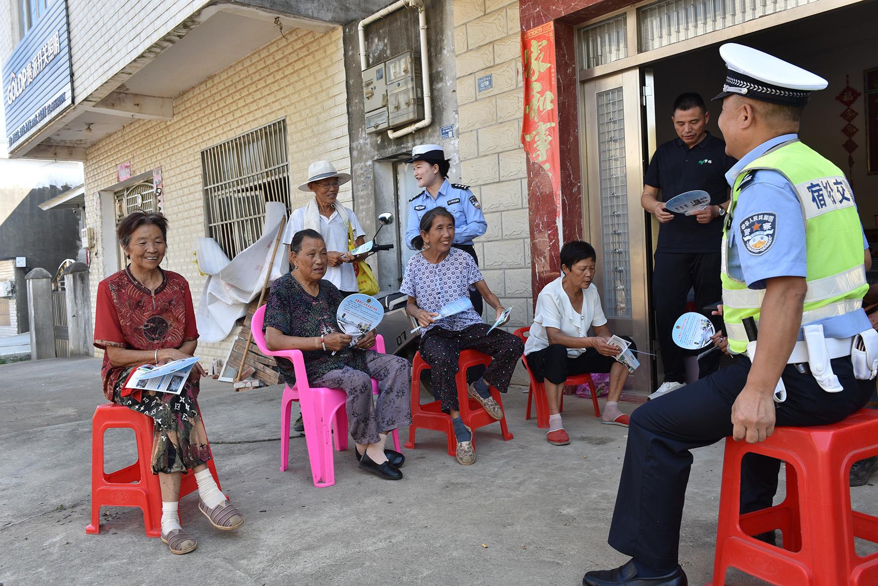 9月5日,安徽省宿松縣公安局交通管理大隊(duì)民輔警通過(guò)“小課堂”向公路沿線村民開(kāi)展交通安全提示。