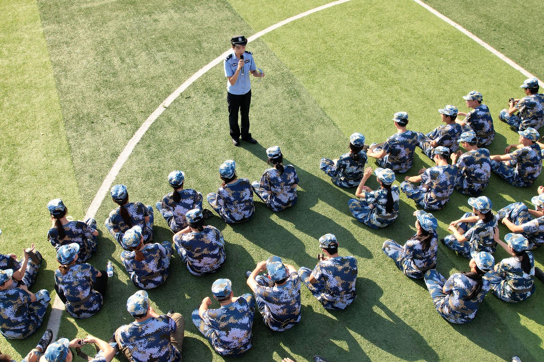9月10日,山東省煙臺市公安局反詐中心聯合芝罘分局民警來到魯東大學,為軍訓的2025級新生開展“開學第一課”反詐宣傳活動。