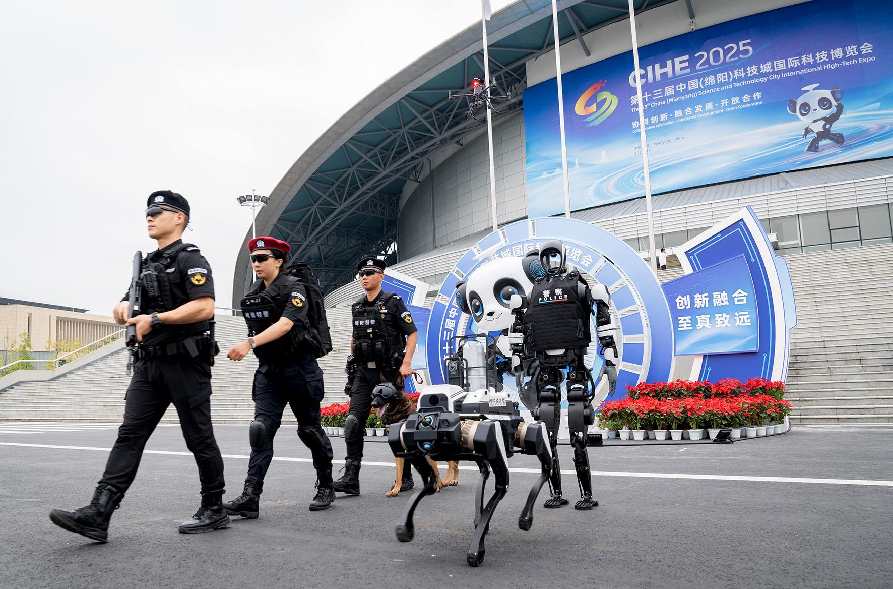9月26日,第十三屆中國(guó)(綿陽(yáng))科技城國(guó)際科技博覽會(huì)開(kāi)幕。四川省綿陽(yáng)市公安局組織警力,全力筑牢科博會(huì)安全屏障。值得一提的是,警用機(jī)器狗、人形巡邏機(jī)器人、無(wú)人巡邏車及空中無(wú)人機(jī)的加入,為巡邏防控工作注入了全新的科技活力。