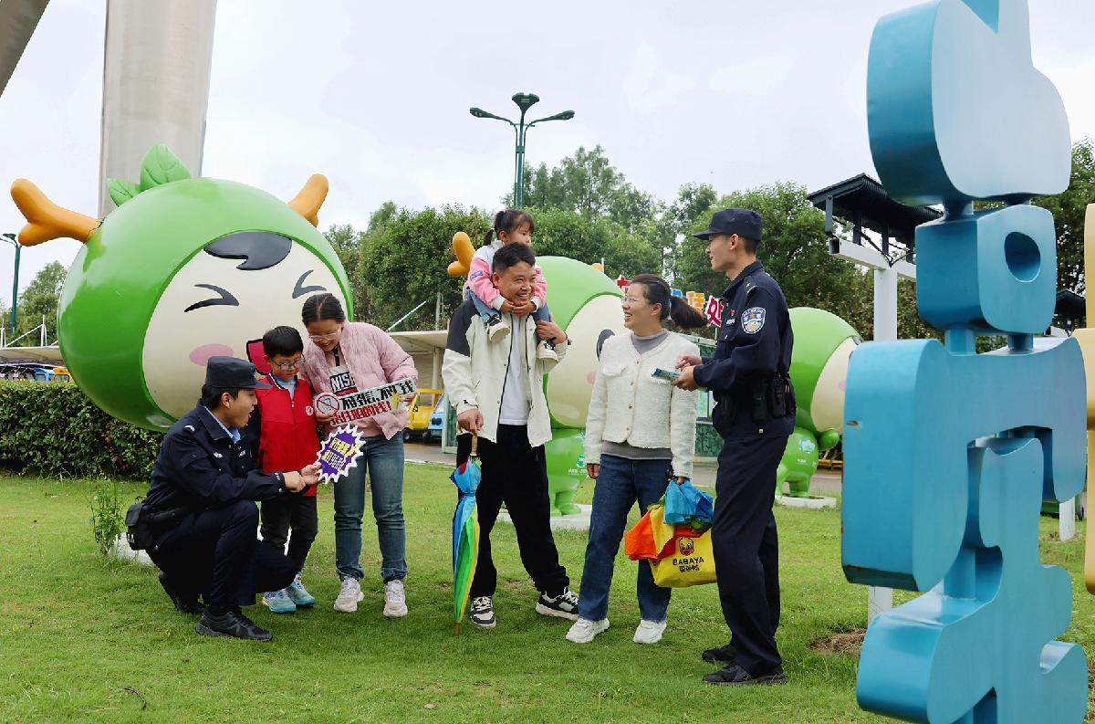 10月1日,遼寧省沈陽市公安局渾南分局民警為小朋友佩戴防走失手帶。