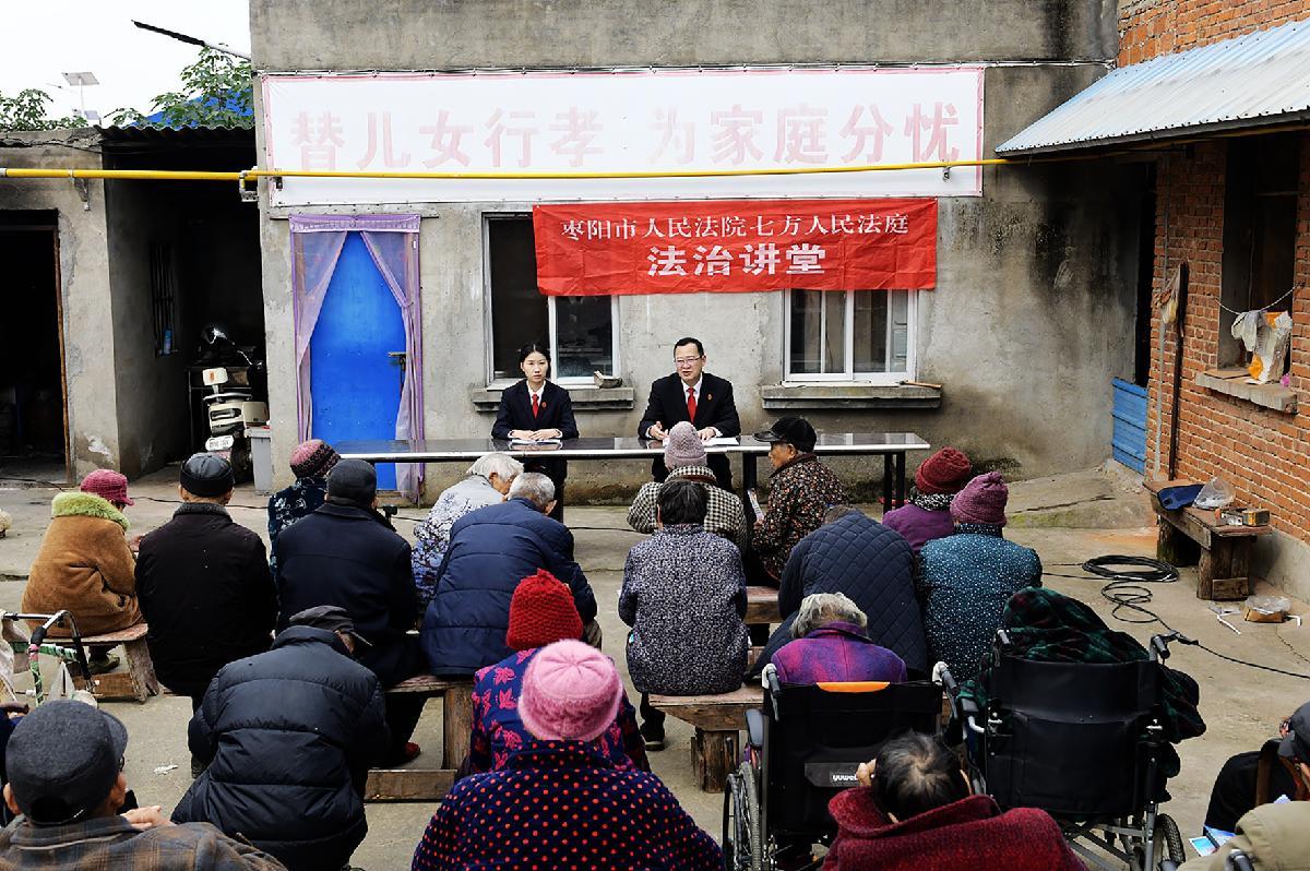 10月29日,湖北省棗陽市人民法院七方法庭組織干警走進(jìn)七方鎮(zhèn)益家人敬老院,開展“法治講堂”普法宣傳。