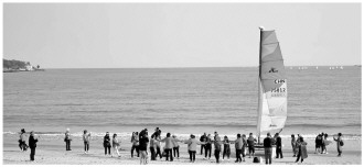 圖為在美麗的漳州東山海灣,游客們載歌載舞。