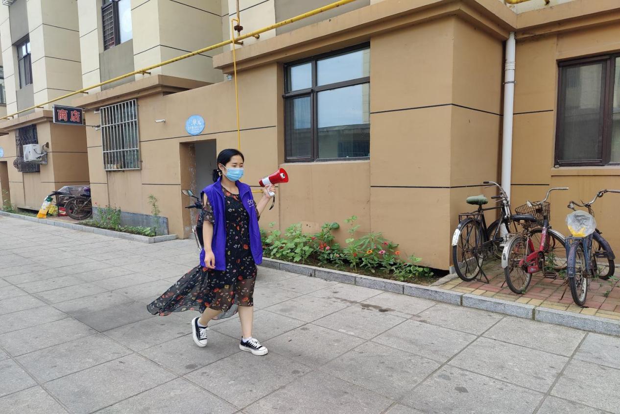 網(wǎng)格員利用小喇叭宣傳疫情防控政策