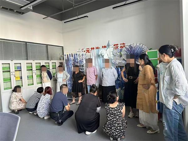7月18日,在山東省臨沂市蘭山區(qū)人民法院“青橙計劃”開設的家庭教育指導課上,家長們被要求扮演蹲在地上的“接受者”,換位思考。受訪者供圖