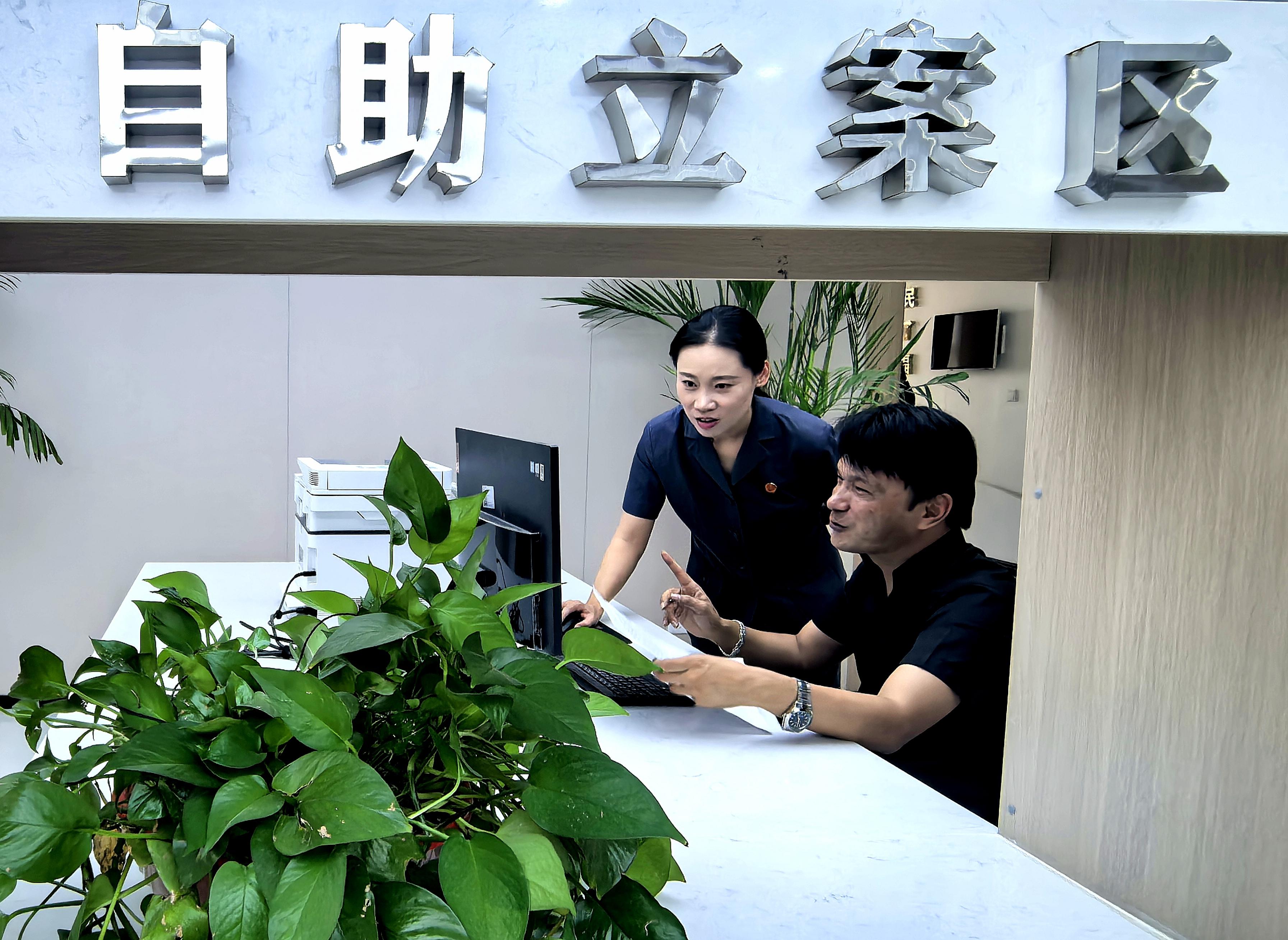 喀什市人民法院自由貿(mào)易試驗(yàn)區(qū)喀什片區(qū)人民法庭法官指導(dǎo)群眾在自助立案區(qū)填寫申請(qǐng)立案材料。 潘從武 攝