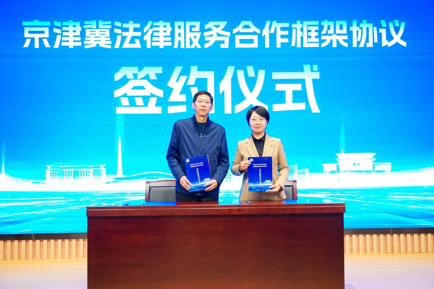 論壇在多項簽約與揭牌環(huán)節(jié)取得實質(zhì)性進展?!熬┙蚣椒煞蘸献骺蚣軈f(xié)議”由北京市豐臺區(qū)、河北省張家口市、滄州市司法局代表共同簽約,標志著三地法律服務協(xié)同進入機制化新階段;“京津冀法律服務基層社會協(xié)同治理合作框架協(xié)議”由雄縣政法委與邵公莊街道、新村街道共同簽署,推動法律服務進一步向社區(qū)延伸。