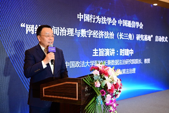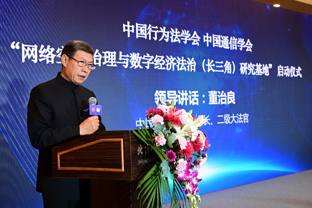 中國(guó)行為法學(xué)會(huì)會(huì)長(zhǎng)董治良在致辭中指出,“網(wǎng)絡(luò)空間治理”和“數(shù)字經(jīng)濟(jì)法治”已是世界范圍內(nèi)的熱門關(guān)鍵詞之一。近年來(lái),我國(guó)在網(wǎng)絡(luò)安全、數(shù)據(jù)安全領(lǐng)域立法取得了重大進(jìn)展,尤其是網(wǎng)絡(luò)安全法、數(shù)據(jù)安全法、個(gè)人信息保護(hù)法的頒布施行,標(biāo)志著我國(guó)網(wǎng)絡(luò)安全和數(shù)據(jù)保護(hù)的基礎(chǔ)性法律架構(gòu)已經(jīng)建立。相關(guān)的落實(shí)和細(xì)化基礎(chǔ)性法律的行政法規(guī)、地方性法規(guī)和政府規(guī)章還在制定過(guò)程中??梢哉f(shuō),我國(guó)數(shù)據(jù)安全保障能力在不斷提升,數(shù)據(jù)開發(fā)利用和產(chǎn)業(yè)發(fā)展得到法律的支持和保障,我國(guó)數(shù)據(jù)潛力即將得以極大釋放,產(chǎn)出巨量的經(jīng)濟(jì)成果。在這樣的大背景下,我們啟動(dòng)成立“網(wǎng)絡(luò)空間治理與數(shù)字經(jīng)濟(jì)法治(長(zhǎng)三角)研究基地”,以加強(qiáng)網(wǎng)絡(luò)治理與數(shù)字法治理論和實(shí)踐問(wèn)題研究,可謂恰逢其時(shí),意義重大。希望研究基地圍繞黨中央決策部署和國(guó)家戰(zhàn)略規(guī)劃,準(zhǔn)確對(duì)標(biāo)新時(shí)代的新要求,聚合國(guó)內(nèi)外優(yōu)勢(shì)科研力量,加強(qiáng)數(shù)字治理、數(shù)據(jù)確權(quán)、數(shù)據(jù)共享、數(shù)據(jù)開放、數(shù)字政府等領(lǐng)域的理論研究,撰寫高層次專題報(bào)告,努力形成一批有辨識(shí)度、有影響力又實(shí)效管用的數(shù)字法治研究成果,把研究基地辦成覆蓋長(zhǎng)三角地區(qū)、服務(wù)全國(guó)的網(wǎng)絡(luò)治理與數(shù)字經(jīng)濟(jì)法治高端專業(yè)智庫(kù)。