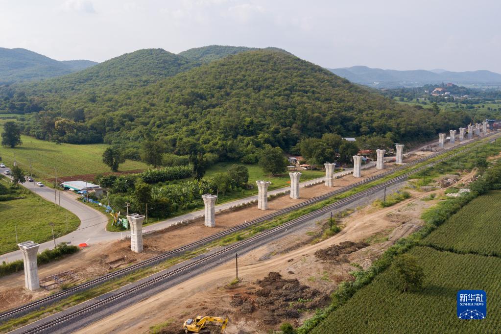 這是位于泰國呵叻的中泰鐵路建設現(xiàn)場(2022年9月7日攝,無人機照片)。新華社記者 林昊 攝