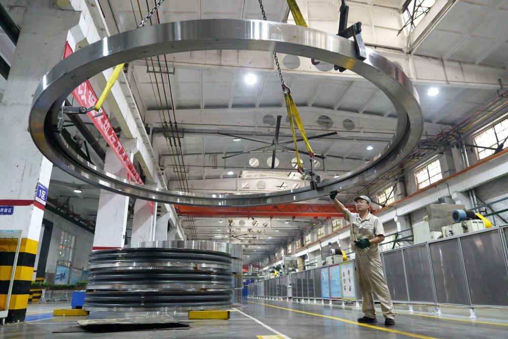 2025年5月22日,工人在位于河南洛陽(yáng)的洛軸集團(tuán)風(fēng)電三車間生產(chǎn)線上作業(yè)。新華社記者 李嘉南 攝