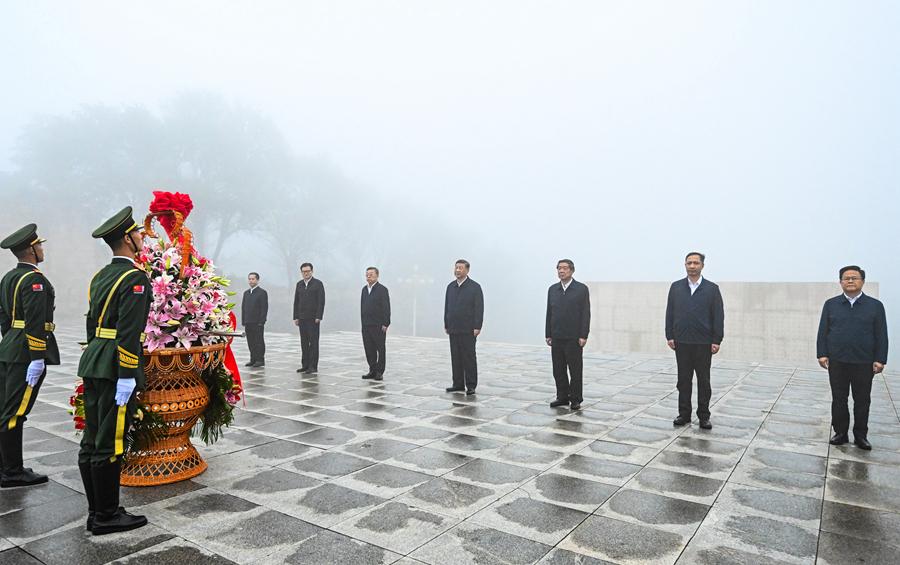 ??7月7日至8日,中共中央總書記、國家主席、中央軍委主席習近平在山西考察。這是7日下午,習近平在位于陽泉市獅腦山的百團大戰(zhàn)紀念碑廣場,向八路軍烈士敬獻花籃。新華社記者 謝環(huán)馳 攝