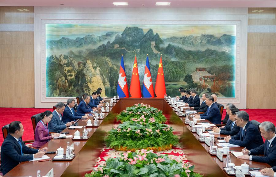 8月30日下午,國家主席習(xí)近平在天津迎賓館會(huì)見來華出席2025年上海合作組織峰會(huì)的柬埔寨首相洪瑪奈。新華社記者 翟健嵐 攝