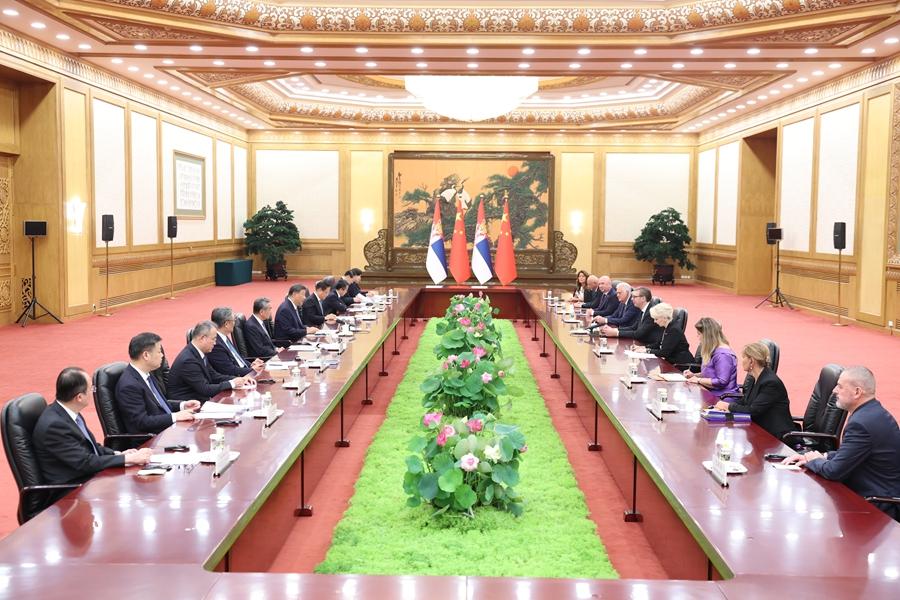 9月4日下午,國家主席習(xí)近平在北京人民大會堂會見來華出席紀(jì)念中國人民抗日戰(zhàn)爭暨世界反法西斯戰(zhàn)爭勝利80周年活動的塞爾維亞總統(tǒng)武契奇。