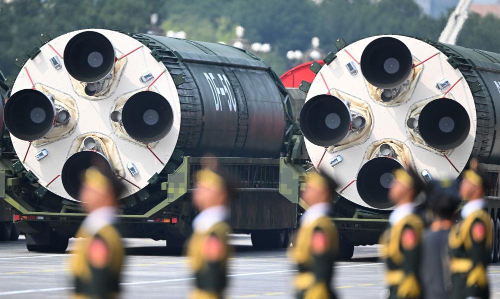 2025年9月3日,紀(jì)念中國人民抗日戰(zhàn)爭暨世界反法西斯戰(zhàn)爭勝利80周年大會在北京隆重舉行。這是核導(dǎo)彈第二方隊(duì)接受檢閱。新華社記者 楊冠宇 攝
