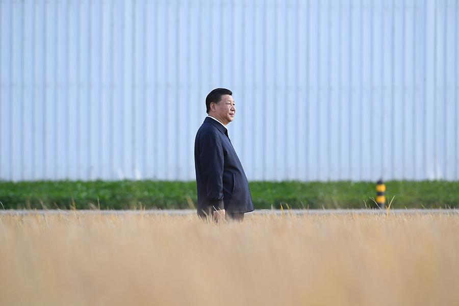 2018年9月25日,中共中央總書記、國家主席、中央軍委主席習(xí)近平抵達(dá)黑龍江省開始考察。這是習(xí)近平在黑龍江農(nóng)墾建三江管理局了解糧食生產(chǎn)和收獲情況。新華社記者 燕雁 攝