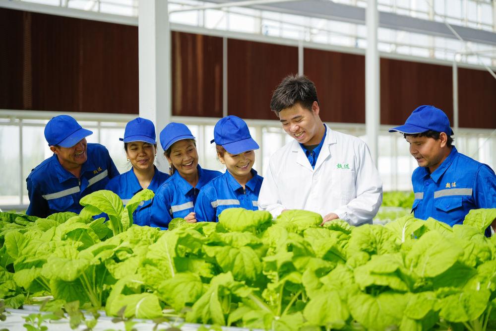 2025年6月25日,在新疆阿克蘇地區(qū)庫車市甬庫同心村智慧農(nóng)業(yè)植物工廠,技術(shù)人員在培訓(xùn)當?shù)氐霓r(nóng)業(yè)產(chǎn)業(yè)工人。該工廠是浙江省寧波市對口援疆項目之一,引入了寧波企業(yè)先進的無土栽培技術(shù)和設(shè)備,通過智能調(diào)控成功種植多種原本不適宜在當?shù)厣娴霓r(nóng)作物。該項目在幫助村民在家門口實現(xiàn)就業(yè)的同時,還為當?shù)嘏囵B(yǎng)了農(nóng)業(yè)產(chǎn)業(yè)工人,同時為周邊學(xué)校開展農(nóng)業(yè)科技科普提供了便利,實現(xiàn)經(jīng)濟效益與社會效益“雙豐收”。