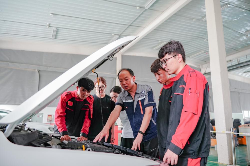 2025年6月27日,在新疆和田技師學(xué)院,援疆教師李寶(中)和當?shù)亟處熞煌笇?dǎo)學(xué)生維修汽車。該校是北京市對口援疆幫扶單位之一,2020年以來,北京市向該校派出3批次累計30人次的援疆教師隊伍,他們在參與學(xué)校管理、承擔教學(xué)任務(wù)的基礎(chǔ)上,還主動開展“傳幫帶”培養(yǎng)當?shù)亟處?,積極組織和指導(dǎo)學(xué)生參與各類技能競賽,為當?shù)芈殬I(yè)技術(shù)教育高質(zhì)量發(fā)展貢獻力量。
