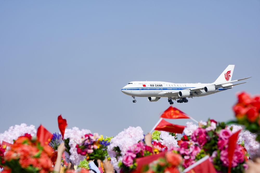 飛機沿著跑道滑行,飛向萬里碧空。送別的人群,沉浸在幸福的喜悅中,久久不愿離去。