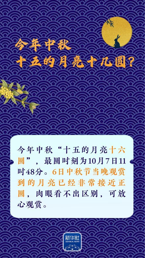 新華社南京10月4日電(記者王玨玢、邱冰清)10月6日將迎中秋佳節(jié)。這個闔家團(tuán)圓的節(jié)日,賞月是無可爭議的重頭戲之一。今年中秋,十五的月亮十幾圓?月亮有啥特殊看點(diǎn)?講究什么“姿勢”?還有什么“彩蛋”?請收下這份中秋賞月指南,科學(xué)賞月,做好攻略→