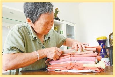 湯春梅仔細(xì)整理一面面褪色的國旗。 圖為姚雨婷攝
