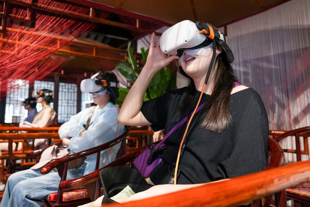 2025年5月18日,游客在江蘇蘇州拙政園體驗VR漫游。近年來,蘇州不斷推進“數(shù)字園林”建設,在園林整體數(shù)字建模、園林要素數(shù)據(jù)庫建設等方面開展探索,利用數(shù)字技術創(chuàng)造“數(shù)字云游”VR場景,打造“云游拙政園”“獅林園宇宙”“留園虛擬元宇宙”等項目,營造真實可感的虛擬空間,讓觀眾沉浸式感受蘇州園林的獨特魅力。