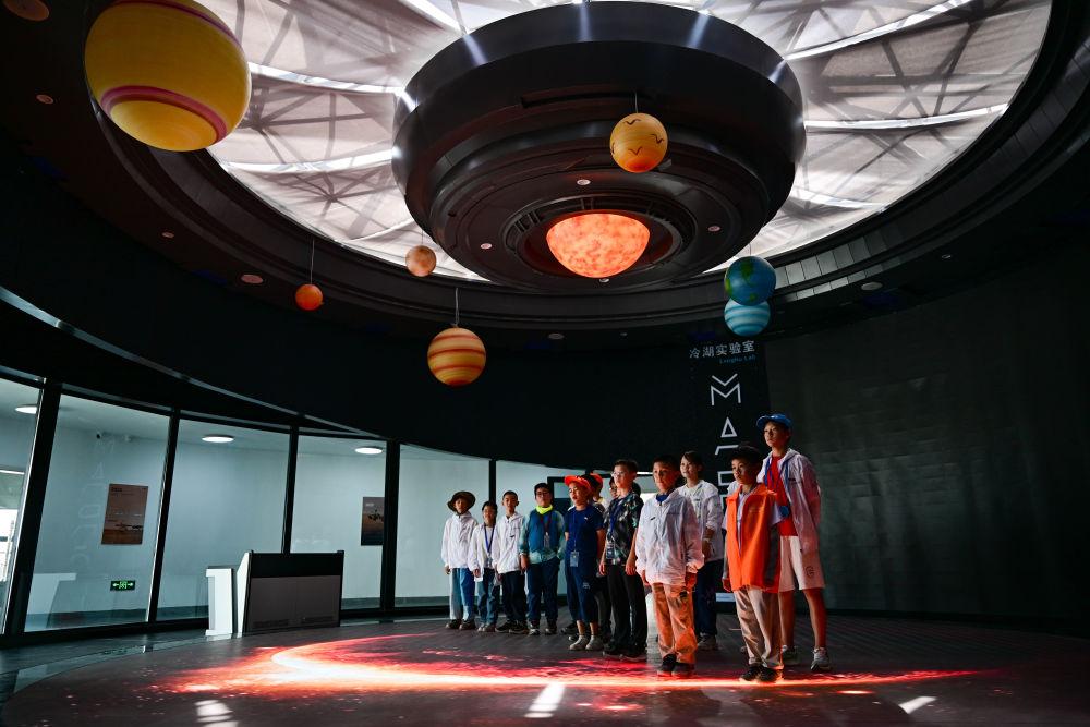 2025年7月29日,參加暑期研學(xué)的小朋友在青海省海西蒙古族藏族自治州冷湖鎮(zhèn)“冷湖實驗室”學(xué)習(xí)天文知識。冷湖鎮(zhèn)曾是因石油而興、又因油盡而沉寂的工業(yè)遺址小鎮(zhèn)。然而,得天獨厚的地理條件,讓冷湖鎮(zhèn)成為理想的觀星地。近年來,當(dāng)?shù)匕l(fā)展科幻特色文旅,讓戈壁小鎮(zhèn)煥發(fā)新的生機。冷湖天文觀測基地引進十余家科研單位的數(shù)十臺望遠鏡,依托天文資源和戈壁奇景,打造火星實驗室、黑獨山等“出圈”地標。連續(xù)舉辦多屆的“冷湖科幻文學(xué)獎”,更讓這片土地成為科幻創(chuàng)作的新高地。冷湖鎮(zhèn)以科幻點亮文旅新場景,也為中國西北工業(yè)小鎮(zhèn)的轉(zhuǎn)型探索出一條充滿想象力的新路徑。