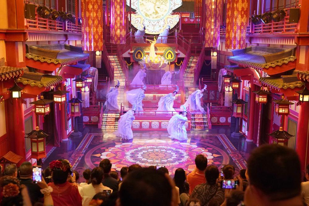 2024年5月19日,游客在西安長安十二時辰景區(qū)觀看表演《霓裳羽衣舞》?!伴L安十二時辰”主題街區(qū)將唐朝文化與現(xiàn)代旅游相結(jié)合,讓游客仿佛置身于千年前的長安城。近年來,西安積極推進產(chǎn)業(yè)升級和文旅融合,以中華優(yōu)秀傳統(tǒng)文化創(chuàng)新創(chuàng)造活力助推經(jīng)濟社會高質(zhì)量發(fā)展,如大唐不夜城一樣火爆“出圈”的文旅項目層出不窮。